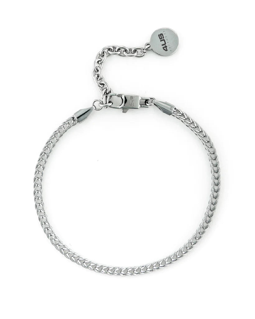 Bracciale catena della collezione 4US Cesare Paciotti da uomo. Colore: argento. Il gioiello è in acciaio inossidabile 316L caratterizzato da una catena con maglie a spiga. Chiusura a moschettone.Codice:4UBR6029