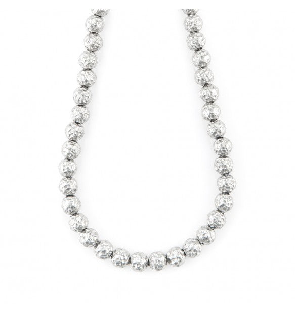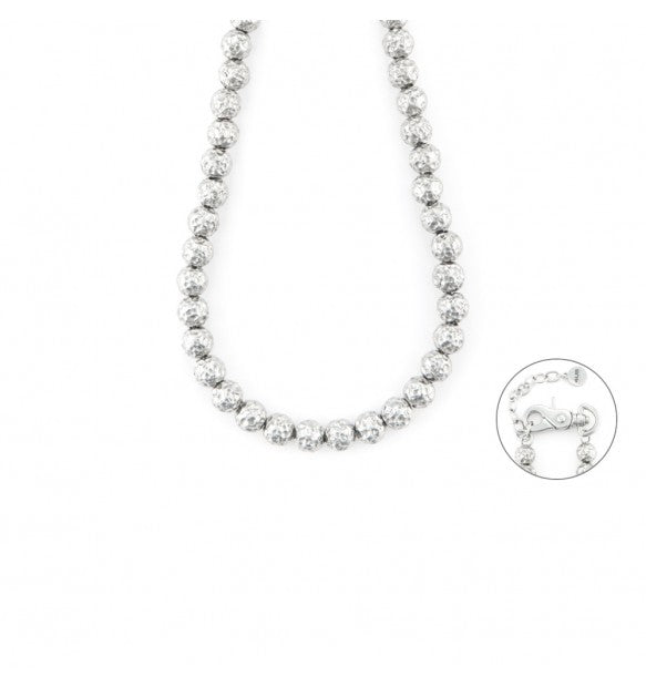 Collana da uomo realizzata con sfere in acciaio anallergico con effetto martellato dal diametro di 8 mm.