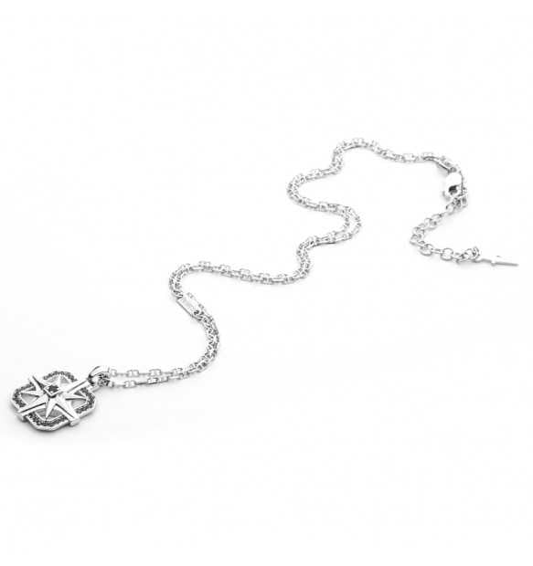 Collana realizzata in argento 925% con finitura lucida. Pendente con rosa dei venti impreziosita da zirconi neri.
