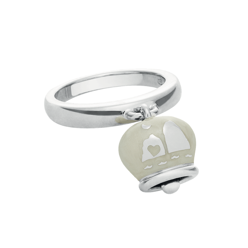 Chantecler Capri anello campanella double face, in argento 925 e smalto bianco perlato, con faraglioni sul retro, della collezione Et Voilà - Codice anello: 36388 - L’argento incontra l’Alta Gioielleria Chantecler. Et voilà! Argento, smalti e pietre preziose: l’allegria diventa lusso da vivere ogni giorno.