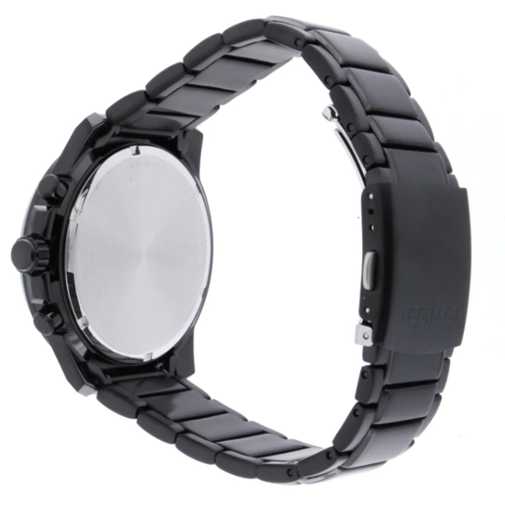Orologio cronografo Citizen Chrono Active con movimento Eco Drive a carica luce con riserva di carica di 270 giorni. La cassa è in acciaio con fondo serrato a vite.