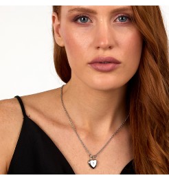Collana da donna realizzata in acciaio anallergico con finitura rodiata e cuore pendente impreziosito da zirconi bianchi.
