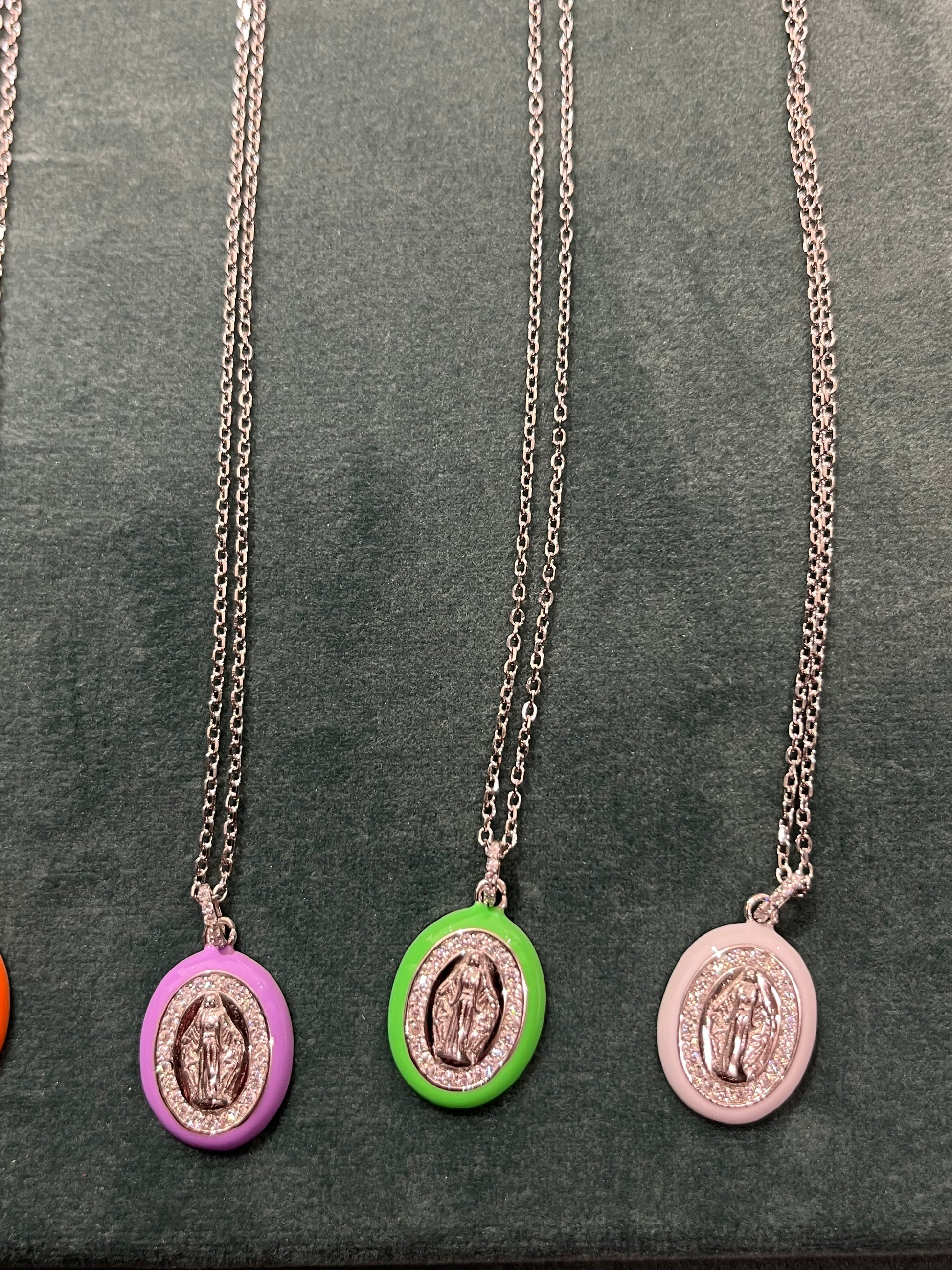 Le Fer Collana In Argento Con Madonna E Bordo Smaltato