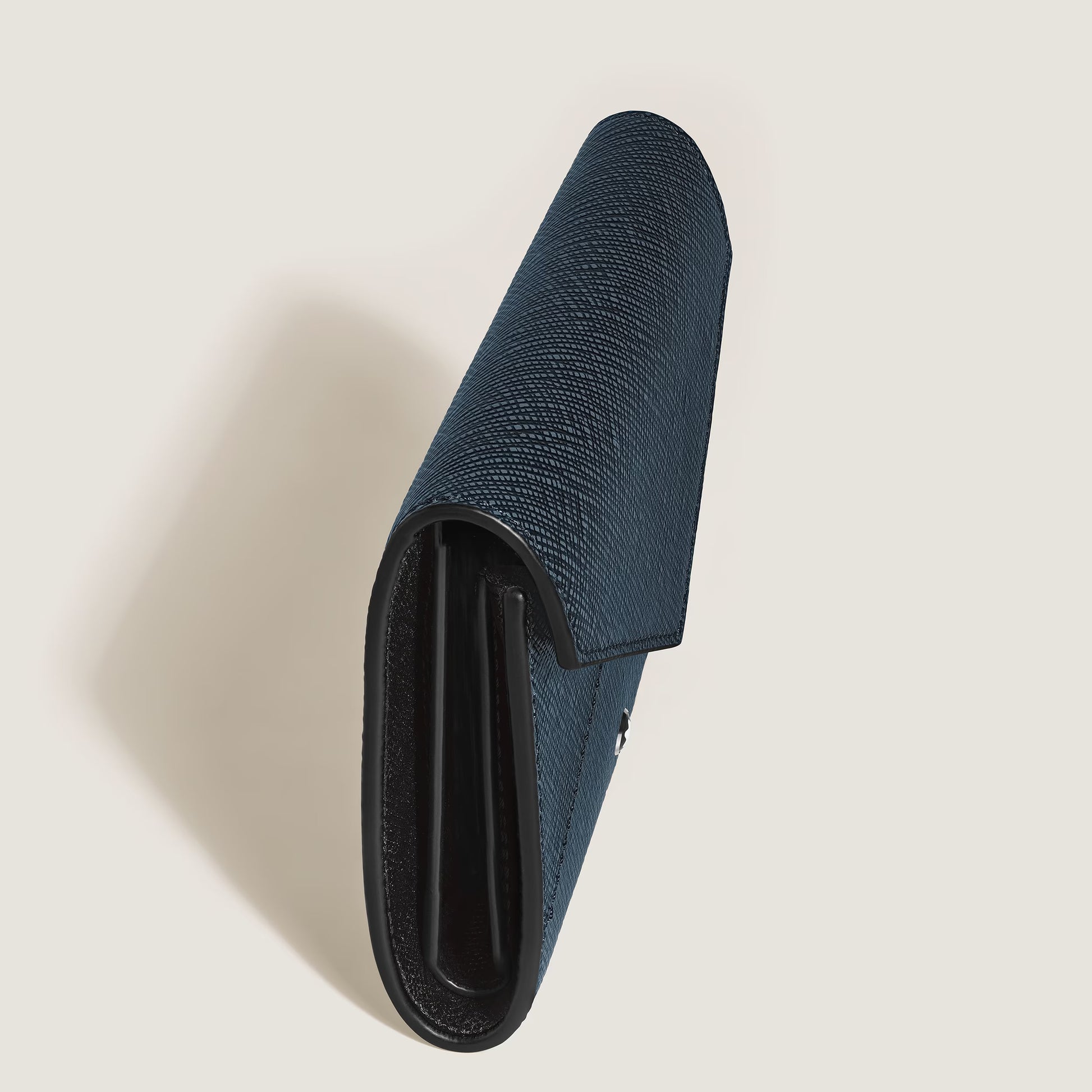 Realizzato in pelle Sartorial goffrata in una raffinata combinazione bicolore di blu e nero classici, questo portafoglio trifold è elegante e al contempo pratico. Pensato per essere riposto comodamente in tasca, l’apertura con fibbia rivela una tasca con cerniera per riporre al sicuro monete e chiavi, sei aperture per carte di credito, uno scomparto per banconote e due tasche aggiuntive per spazio extra.