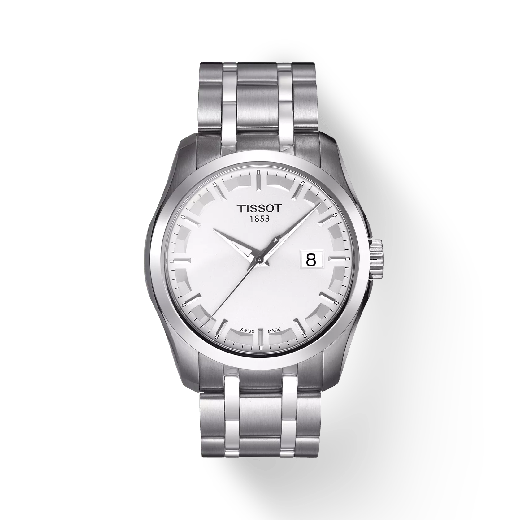 Orologio Solo Tempo Da Uomo Di Tissot Della Collezione T-Classic Della Linea Couturier. Nome Orologio: Tissot Couturier. Orologio Con Cassa In Acciaio 316 L Di Forma Rotondo Di Dimensioni 39Mm Con Spessore Di 10.45Mm E Distanza Tra Le Anse Di 22Mm.Cassa Con Vetro Zaffiro Antigraffio. Il Quadrante È Di Colore Argento Con Indici. Il Cinturino È Realizzato In Acciao Inossidabile Di Colore Grigio E Con Chiusura A Farfalla Con Pulsanti. Orologio Swiss Made Con Movimento Svizzero, Al Quarzo E Alimentazione Quarzo Eol. Modello: Eta F06.161. Batteria:Tipo Renata 371. Funzioni: Big Date, Eol (Battery End-Of-Life Indicator). Peso: 171 G. Orologio Impermeabile Fino A 10 Bar (100 Metri/330 Piedi). La Referenza È T0354101103100