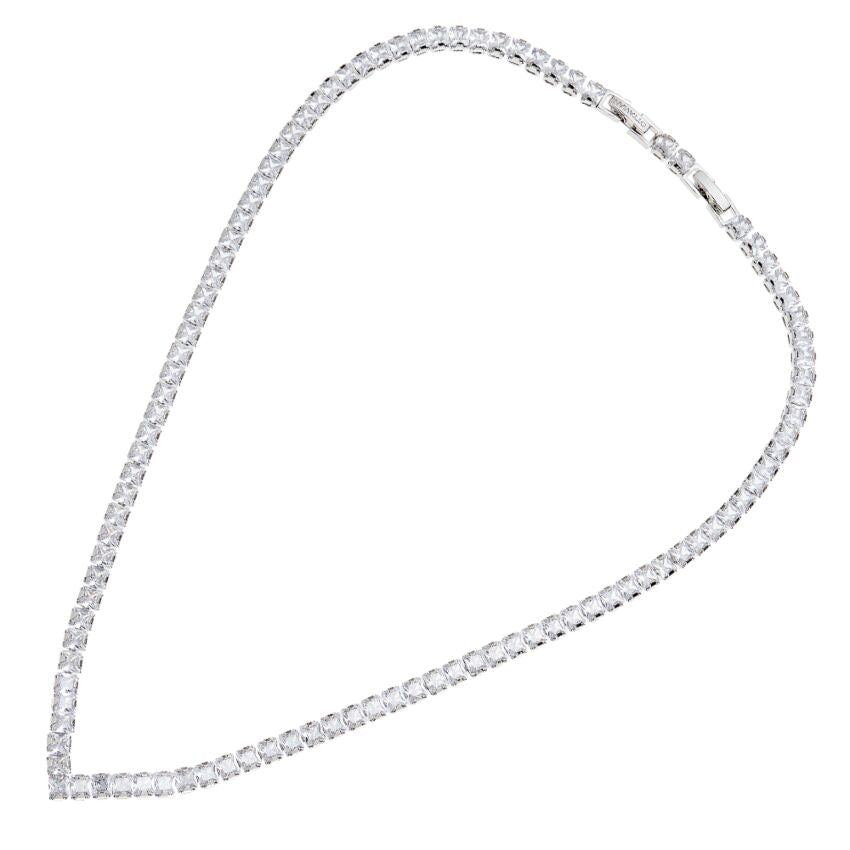 Collana da donna della marca Ottaviani, il gioiello è rodiato ed è fatto in Italia, raffigura un girocollo modello tennis con zirconi bianchi con punta a V. Lunghezza cm 44,8+ext 2; larghezza cm 0,5 chiusura déployante