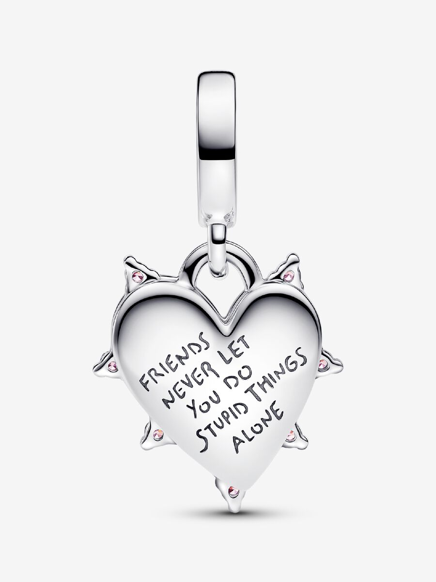 Celebra i tuoi amici di una vita con questo charm pendente in Argento Sterling 925, decorato da pietre scintillanti e da un opale rosa con riverberi turchesi creato in laboratorio. "FRIENDS NEVER LET YOU DO STUPID THINGS ALONE” (Gli amici non ti lasciano mai fare cose stupide da solo) è inciso sul retro del charm ed è l'omaggio perfetto per le persone che sono al tuo fianco in ogni momento.