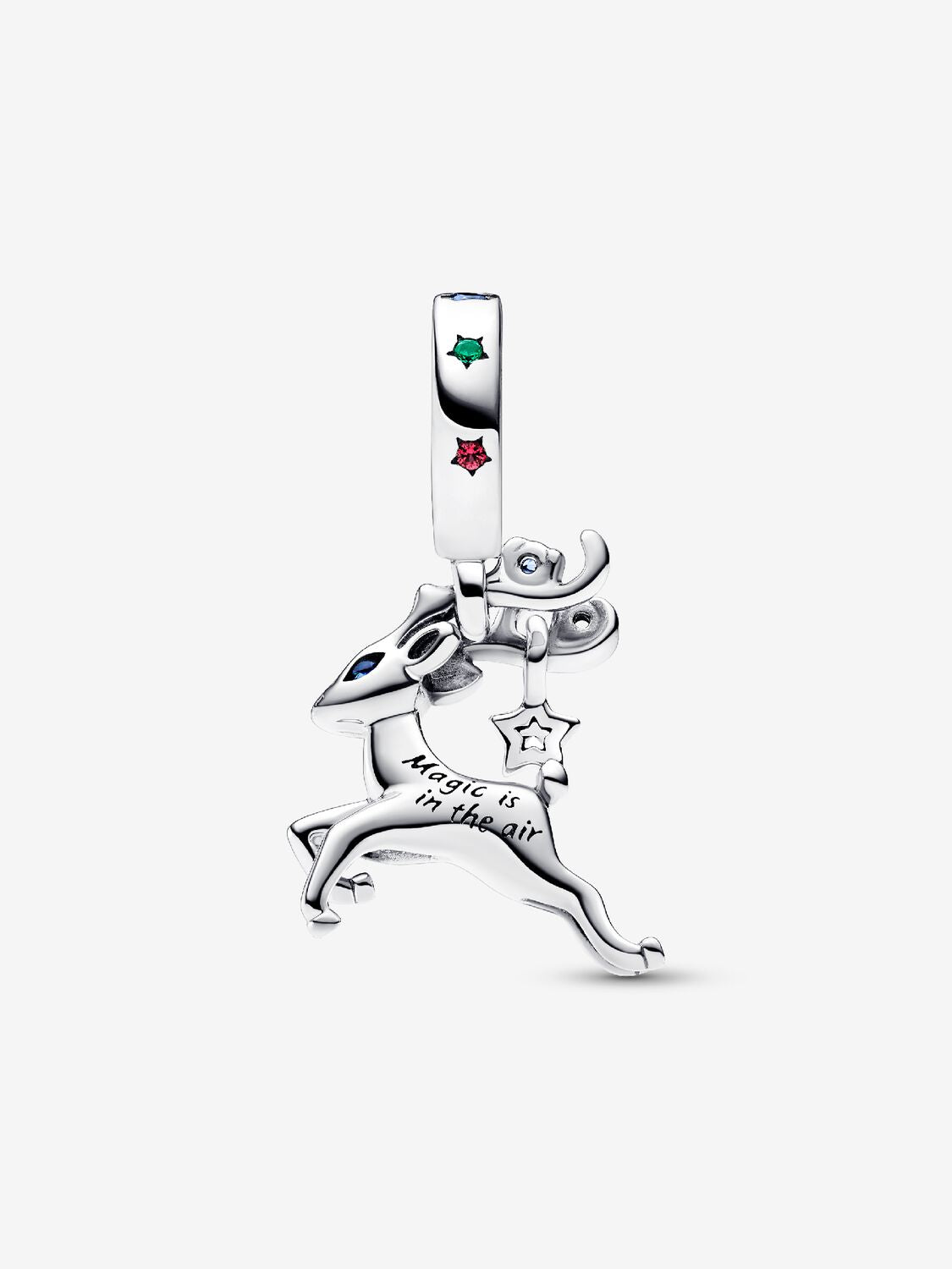 Vivi la magia delle feste con il Charm Pendente Renna. Questo charm in Argento Sterling 925 rappresenta un'elegante renna in posa dinamica, che sembra volare attraverso l’aria trainando la slitta di Babbo Natale. I fiocchi di neve incisi sul corpo evocano l’atmosfera invernale, mentre i cristalli blu creati dall’uomo decorano gli occhi e le corna della renna. Anche l'anello passante è impreziosito da cristalli colorati creati dall’uomo incastonati in forme a stella. L'incisione "Magic is in the air" (La magia è nell’aria) completa il charm per ricordarti di celebrare la gioia del periodo natalizio.